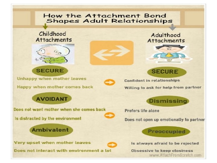 Attachment theory • attachments — the emotional bonds that have their origins in contact comfort • Attachment theory states that a strong emotional and physical attachment to at least one primary caregiver is critical to personal development