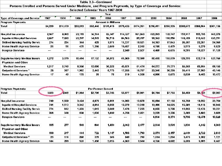 Particularly good places for data • Center for Medicare and Medicaid Services • Kaiser Family Foundation • They update all of the data in this chapter faster than I can.
