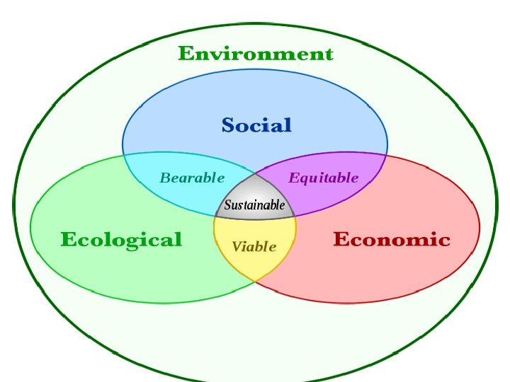 SUSTAINABLE DEVELOPMENT Sustainability means relationship between humans and resources they depend on for all their development activities. Objective: Optimum use of natural resources with v Reusability v Min. Wastage v Least pollution v Max. Productivity Types ØInter-generational equity ØIntra-generational equity
