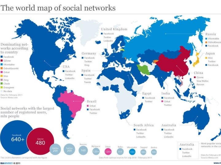 The Scale and Growth of Social Networks l l Facebook statistics – 829 million daily active users on average in June 2014 – 1. 32 billion monthly active users as of June 30, 2014 – 81. 7% of daily active users are outside the U. S. and Canada – 22% increase in Facebook users from 2012 to 2013 Facebook activities (every 20 minutes on Facebook) – 1 million links shared – 2 million friends requested – 3 million messages sent http: //newsroom. fb. com/company-info/ http: //www. statisticbrain. com/facebook-statistics/