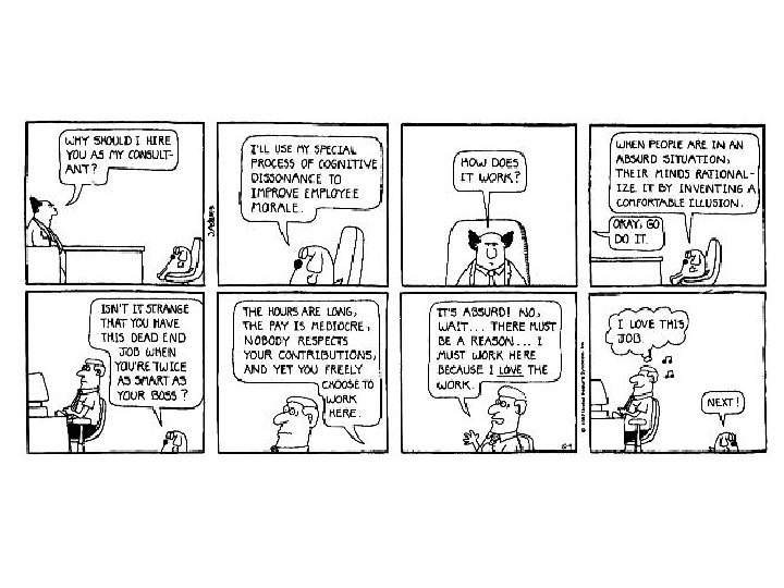 Attitude and Behavior You have a belief that cheating on tests is bad. But you cheat on a test!!! The teacher was really bad so in that class it is OK. • Do attitudes tell us about someone’s behavior? • La. Piere’s Study Cognitive Dissonance Theory • People want to have consistent attitudes and behaviors…. when they are not they experience dissonance (unpleasant tension). • Usually they will change their attitude.