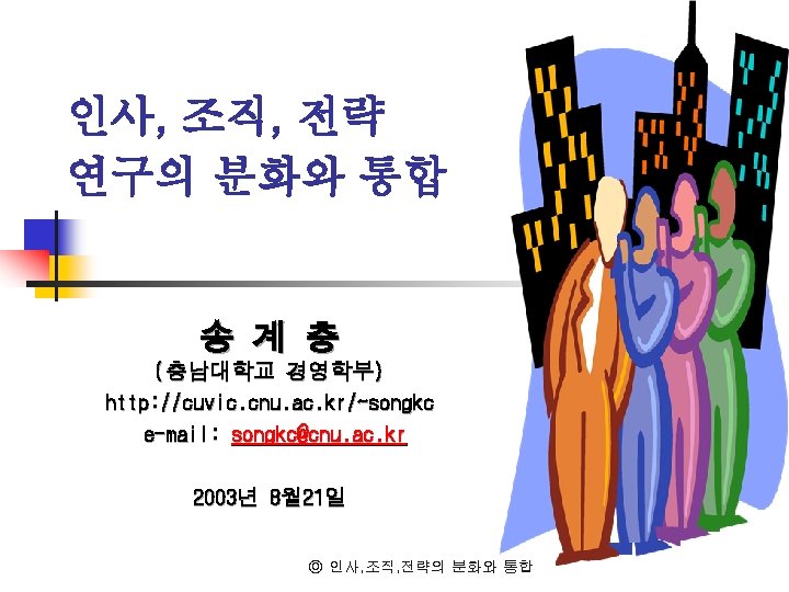 Social Sciences Citation Index - MANAGEMENT JOURNAL LIST (계속) § 24. JOURNAL OF ORGANIZATIONAL BEHAVIOR § § § § 25. 26. 27. 28. 29. 30. 31. § § 32. 33. 34. 35. MANAGEMENT JOURNAL OF ORGANIZATIONAL CHANGE MANAGEMENT LEADERSHIP QUARTERLY LONG RANGE PLANNING MANAGEMENT LEARNING MANAGEMENT SCIENCE MIT SLOAN MANAGEMENT REVIEW NEGOTIATION JOURNAL-ON THE PROCESS OF DISPUTE SETTLEMENT NEW TECHNOLOGY WORK AND EMPLOYMENT ORGANIZATION SCIENCE ORGANIZATION STUDIES 7 ◎ 인사, 조직, 전략의 분화와 통합