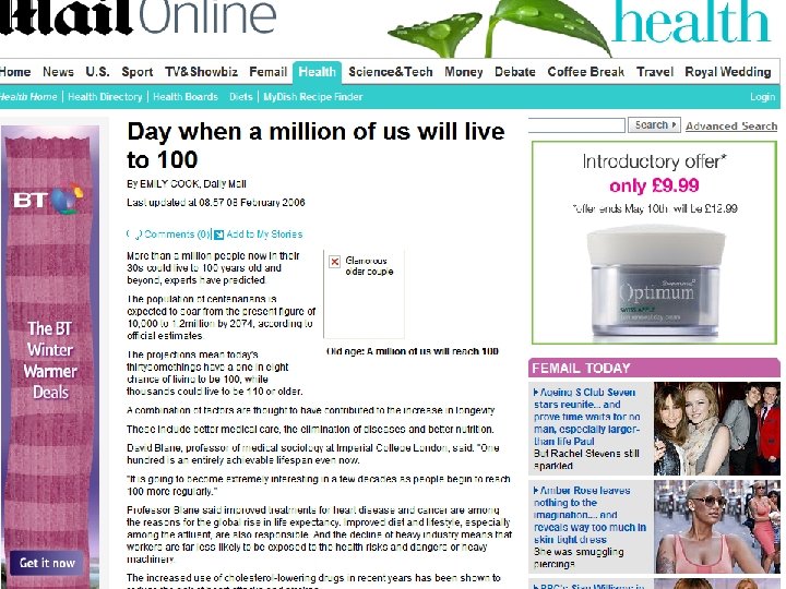 Growing pressure • We are an ageing society – people now living much longer than they were • More people over 65 than under 16 for the first time • 10 m people are over 65 – by 2050, forecast is 19 m • In 1900, 1% of popn. was > 65; 2000 it was 7%; by 2050, it will be 20% • Number of people working beyond retirement age (65) has doubled in 10 years to 900, 000