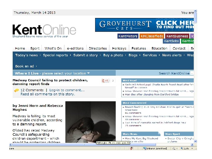 Baby P – Lord Laming report 2009 • • Failure of agencies to share information Social workers over-stretched Red-tape+form filling hampering front-line staff “Over-complicated, lengthy and tick-box assessment+recording system. ” • Child protection seen as ‘Cinderella Service’ • Too many authorities failed to adopt his reforms following Victoria Climbie report in 2000 • “It seems like they have to do all this form filling. Their bosses make them do it but it makes them forget about us” – 16 -year-old in care