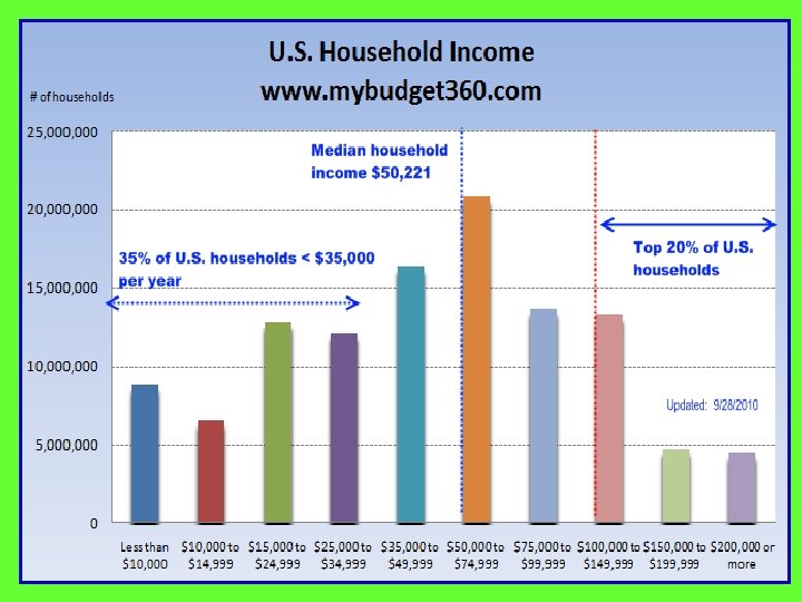 Upper Class • • 1– 3% of population About 5% make $150, 000+ About 1% make $250, 000+ 25% of total wealth