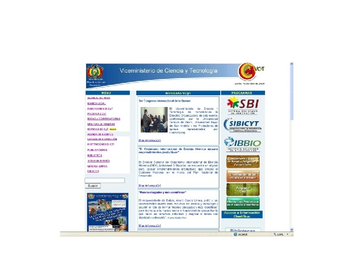 Etapas • Se establecen tres etapas en el desarrollo de la ciencia y de la tecnologia : – Small Science o ciencia moderna (primera mitad del siglo XX) – Big Science o macrociencia (durante la 2 da. Guerra mundial) – Tecnociencia (aparecen los sistemas nacionales de ciencia y tecnología)