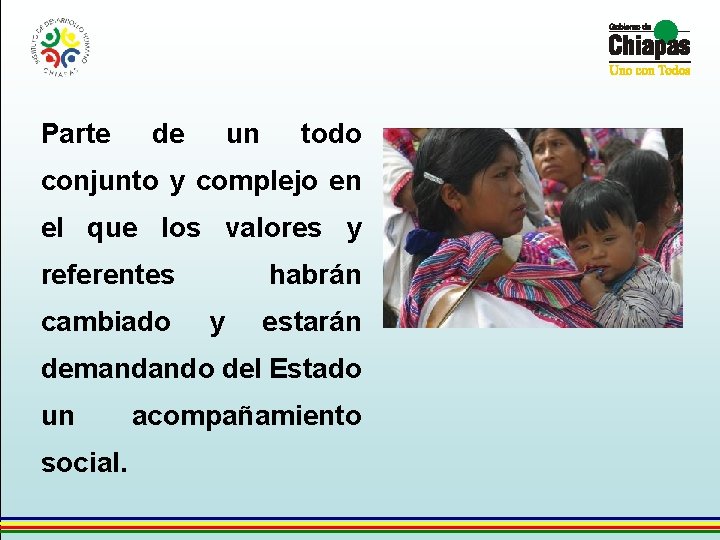 Parte de un todo conjunto y complejo en el que los valores y referentes cambiado habrán y estarán demandando del Estado un social. acompañamiento