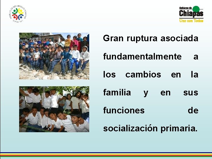 Gran ruptura asociada fundamentalmente a los la cambios familia y funciones en en sus de socialización primaria.