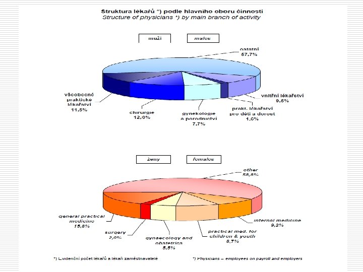 Zdravotnická ročenka ČR (ÚZIS) o o o o Ucelená informace o zdravotnictví v ČR NZIS, demograf. údaje ČSÚ Data za oblast - demografie - zdravot. stavu obyvatel - sítě a činnosti ZZ - pracovníků a jejich vzdělávání - ekonom. ukazatele - mezinárodní srovnání Textová, tabulková, grafická část Ochrana osobních údajů Od r. 1960, od 1991 v česko – angl. verzi Elektronická verze