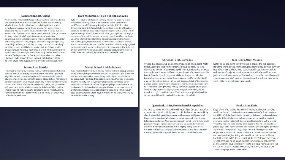 • Pracovní role, Příklady: a) Jeden z vaší skupiny má na starosti číst text, druhý je moderátorem skupiny, třetí kontroluje správnost odpovědí. b) Každý ze skupiny může získat informace z jiného zdroje (učebnice, encyklopedie, internet, konzultace s učitelem) c) Rozhodněte se, kdo z vás bude psát text a kdo vytvoří grafiku. • Hra v roli, Příklady: a) Ve vaší tříčlenné skupince si rozdělte roli otce, matky a dítěte, které již po několikáté přišlo pozdě domů. Ve hře se pokuste zjistit důvody a najít řešení situace. b) Jste prodavači v jednom z oddělení obchodního domu, ve kterém se stále častěji množí krádeže. Předveďte schůzi pod vedením vedoucího oddělení, která by měla vést k opatřením proti krádežím.