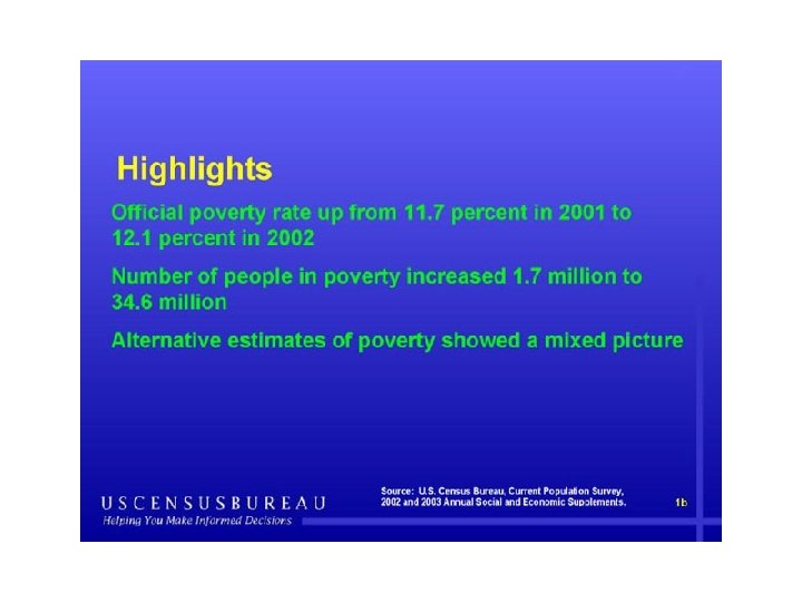 • Limited number of stories on poverty on national newscasts. – 11 per network per year 1981 to 1986