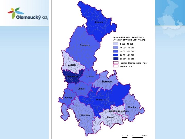 Dopad ROP SM na hospodářské ukazatele v OK • HDP na 1 obyvatele – Rok 2006 - 251 051 (74 % ČR a 36 % EU 28) – Rok 2013 - 299 355 (77 % ČR a 43 % EU 28) • Míra nezaměstnanosti – Rok 2006 - 8, 2 % – Rok 2013 - 9, 2 % • Počet ekonomických subjektů – Rok 2006 - 130 427 – Rok 2013 - 137 119 • Počet hostů v hromadných ubytovacích zařízeních – Rok 2006 - 430 839 – Rok 2013 - 512 430