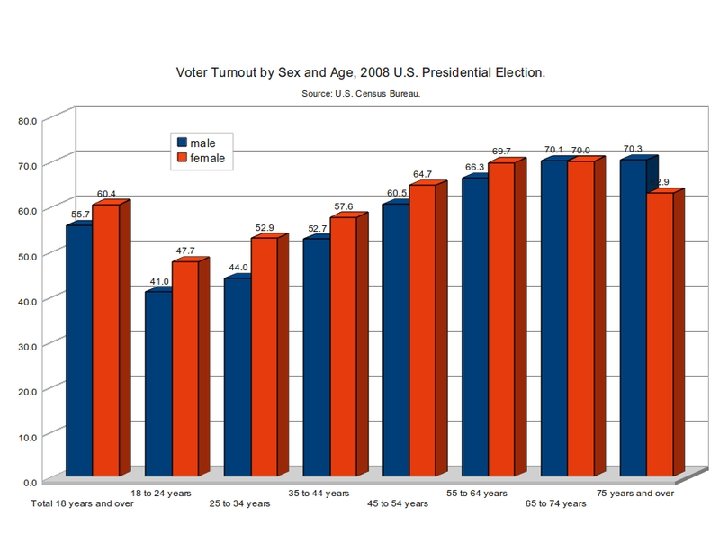 Factors that affect voter turnout: • • • Age Education Income Gender Race