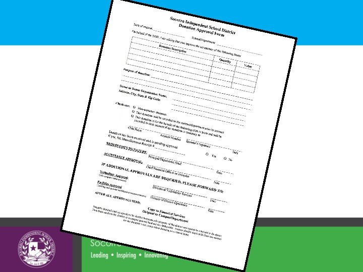 Donations When asking for or receiving donations, ensure sponsors use the Donation Approval Form