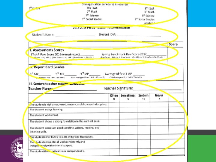 Pre AP Application 1. Teacher Recommendation (1 per content area) 2. Personal Narrative (1 per applicant) 3. Signed student/parent Pre AP Agreement