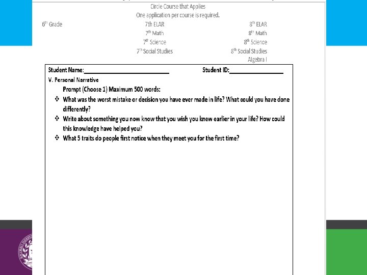 ü General Application ü Personal Narrative Sheet ü Parent/Student Agreement ü Summer Assignments