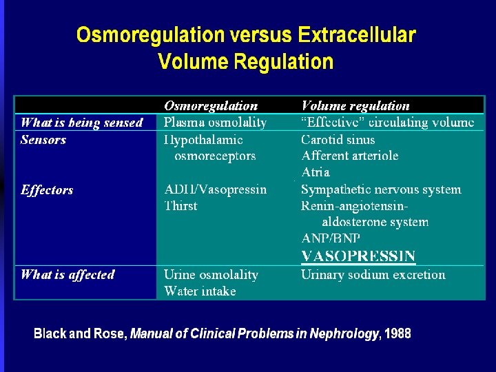 Low ECF Volume Urine volume High Volume Osmotic diuresis Diabetes Insipidus Low Volume Osmotic diarrhea Insensible loss hypodypsia