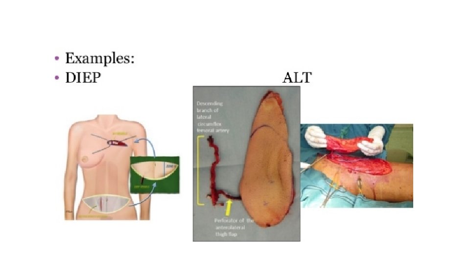 • Indications of Free flaps ▫ Need for a certain tissue at recipient site ▫ No local options (foot, distal 1/3 leg, head and neck) ▫ Massive defects ▫ Areas that need reconstruction with multiple different tissue types (head and neck/ breast) ▫ Areas requiring freshly vascularised tissue