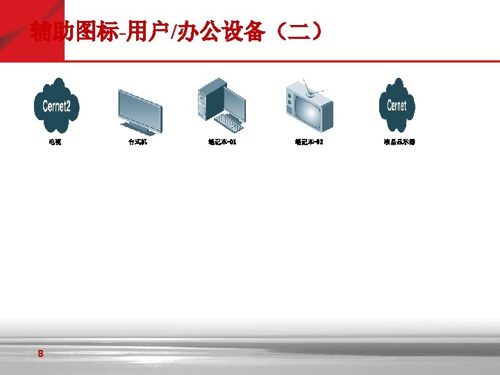 Icons: Cisco Products (Cont. ) Centri Firewall IOS Firewall MGX 8220 MGX 8240 Cisco Security Manager Data Switch Processor, AKA Data Center Switch, Reversed DSLAM Router with Firewall PIX Firewall Right and Left Cisco Call. Manager IP Telephony Router Cisco 6705 Access Server MGX 8260 Voice-Enabled ATM Switch Optical Transport Cisco 6732 Access Server Cisco 6701