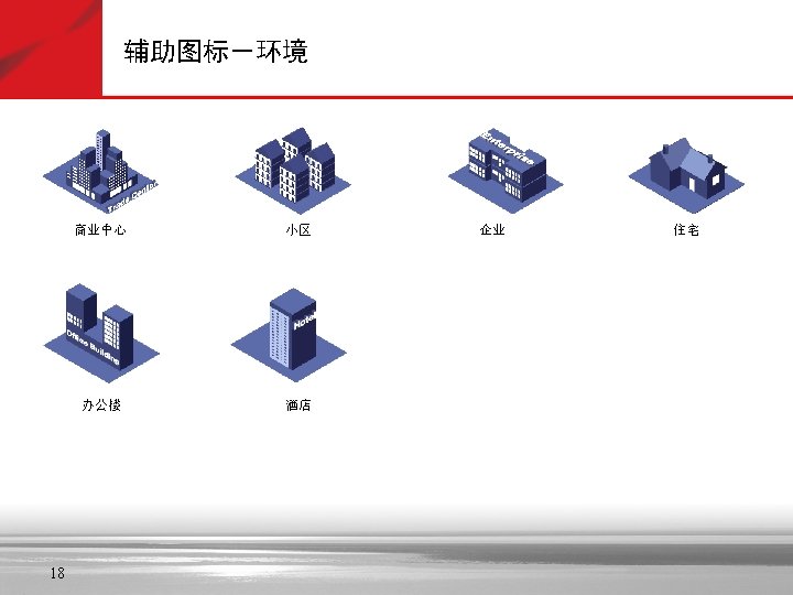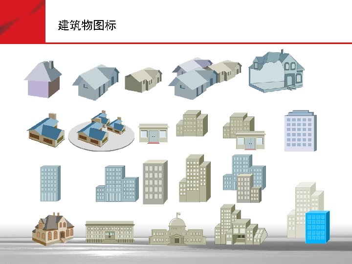 建筑物图标 Government University Small Business Branch Office, Regular, Subdued, and Blue Headquarters, Regular, Subdued, and Blue House, Regular and Blue Telecommuter House (Color and Subdued) Medium Building, Regular, Subdued, and Blue MDU Home Office