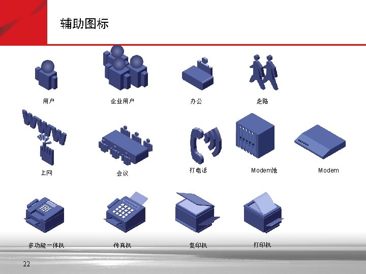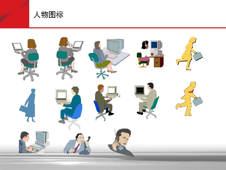 人物图标 Jet Plane Building Cloud Man - Standing Building – with Router Cell Phone File Cabinet Globe Man and Woman Modem Handheld Device Monitor Inventory PDA Central Site with Access Server