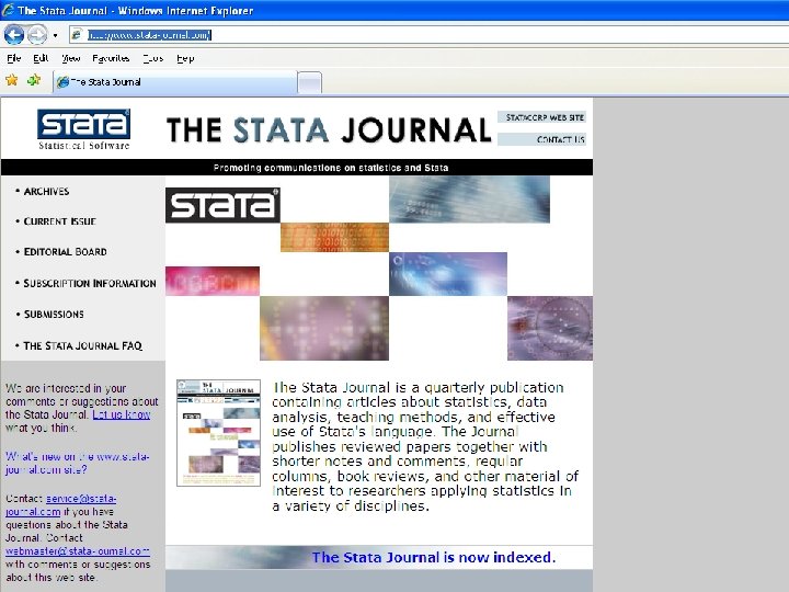 Resources l l l Stata. Corp website (www. stata. com) Timberlake website (www. timberlake. co. uk) UCLA Stata “portal” (statcomp. ats. ucla. edu/stata) Statalist (www. hsph. harvard. edu/statalist) Stata Journal (www. stata-journal. com)