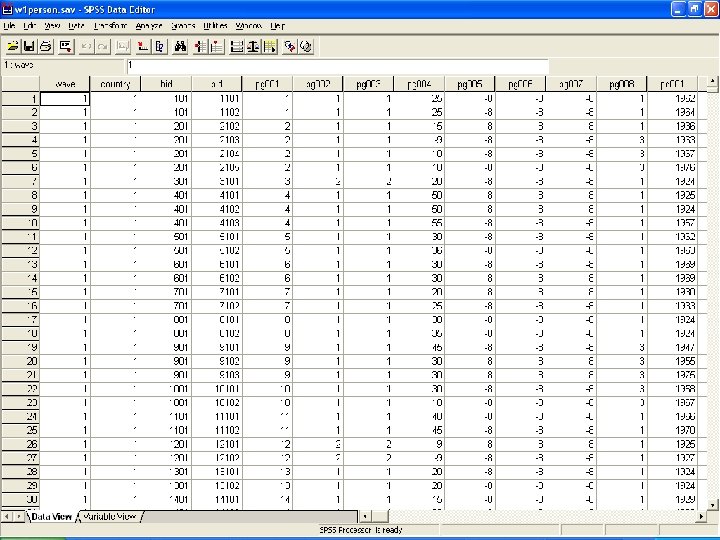 Stata – using wide and long file formats l Wide file formats (everything you add goes to the right of the existing data) l Long file formats (everything you add goes underneath the existing data)