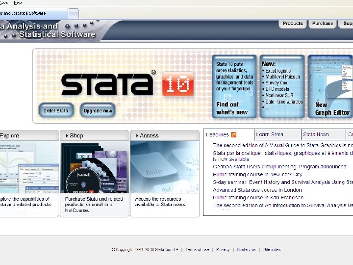 Resources Stata. Corp website (www. stata. com) l Timberlake website (www. timberlake. co. uk) l UCLA Stata “portal” (http: //www. ats. ucla. edu/stat/) l