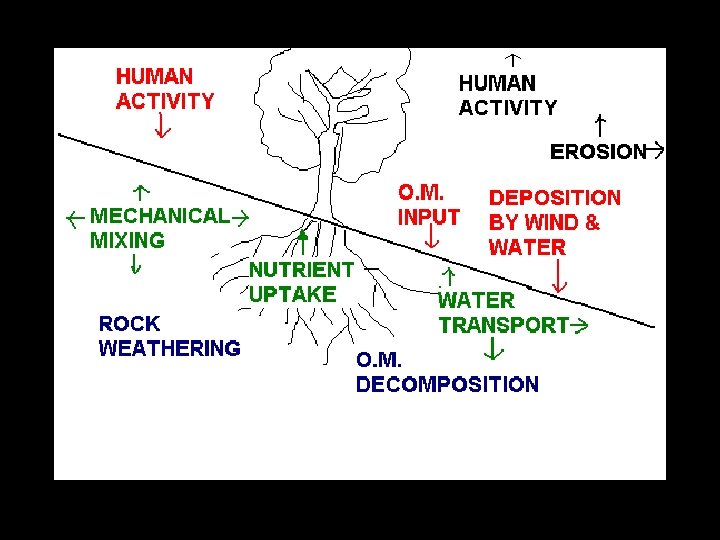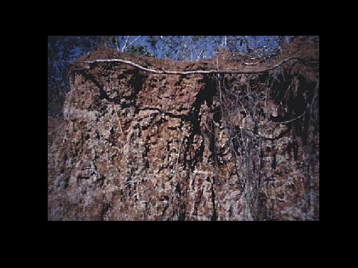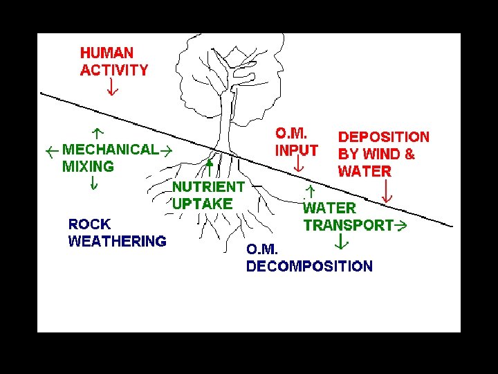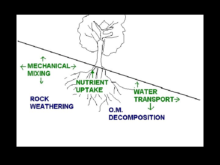 • Macroanimals (insects, mammals, gastropods, earthworms) – mix, bind soil; create channels for air, water • Microanimals (nematodes, protozoa) • Macroplants (the green plants) – provide organic matter, roots create channels, adsorb nutrients, release CO 2, stabilize, protect from erosion
