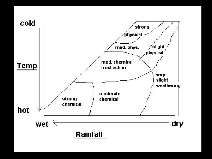 Temperature and humidity increase the depth of weathering. High latitude Dry, SW US Humid, SE US Humid, tropics