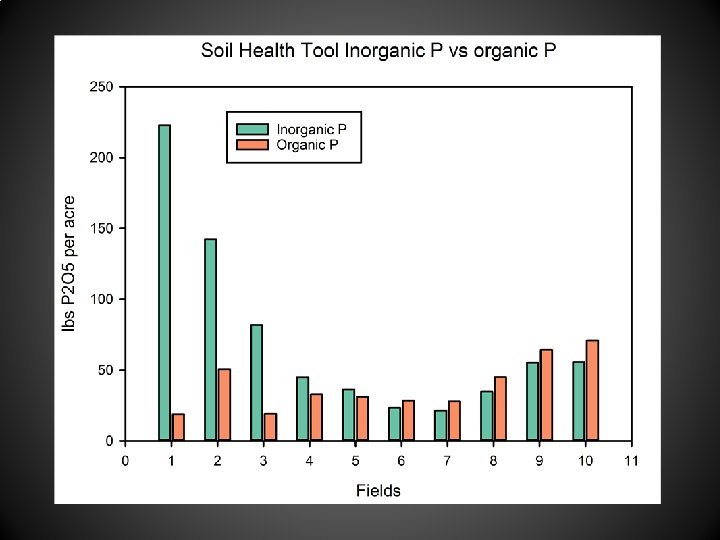 Phosphate • Current labs 1. ICP P or PO 4 -P using 7 different extractants • Soil Health 1. ICP P 2. PO 4 -P 3. H 3 A (mimics plant root exudates) 4. Soil respiration 5. Org C: N 6. P min 7. % water P/ H 3 A P 8. % P/ Fe. Al 9. Ca/Fe. Al