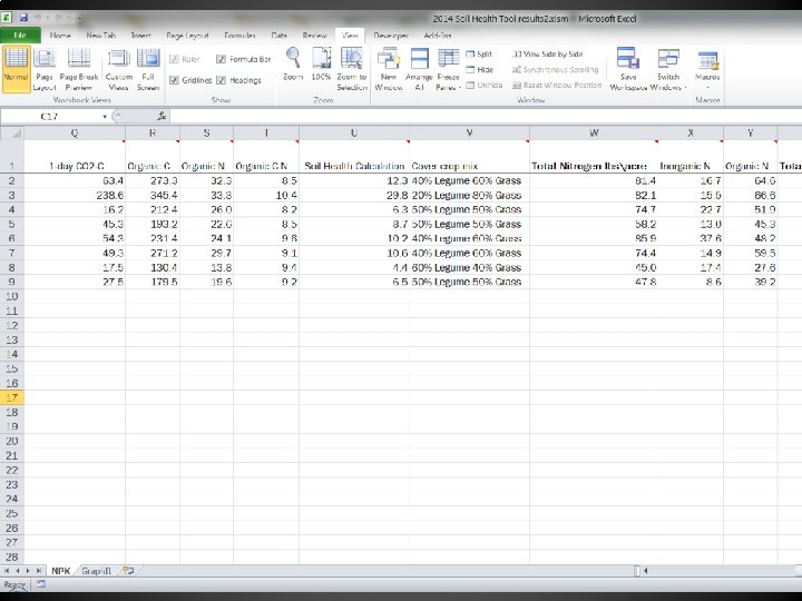 Soil Respiration and Nitrogen 1 day CO 2 -C of 50 ppm WEON of 40 ppm WEOC 400 ppm Calculation 50/400=0. 125*40=5 5*4 (rainfall events)=20 ppm 20*2 (0 -6 inch sample)=40 lbs N 1 day CO 2 -C of 80 ppm Calculation 60/400=0. 2*40=8 ppm 8*4(rainfall event)=32 ppm 32*2=64 l bs N 1 day CO 2 -C of 300 ppm Calculation 300/400=0. 75*40=30 ppm 30*4 (rainfall event)= 120 ppm 120*2=240 lbs N BUT, we only measured 40 ppm WEON or 80 lbs of N Therefore we will never credit more N from the WEON pool than we measure AND whether the credit is 80 lbs, or 40 lbs, this is nitrogen we would have missed if we just measured nitrate