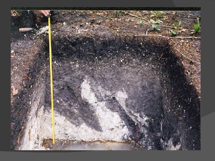 A horizon § topmost mineral horizon (<12% O. M. ; if clayey: <18% O. M. ) accumulation of well-decomposed O. M. § Often bioturbated § § OR surface horizon disturbed by plowing (Ap)