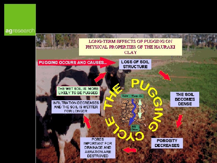 Soil compaction → Reduces % of macro pores → Reduces soil drainage and aeration → Reduces plant growth Pugging cycle