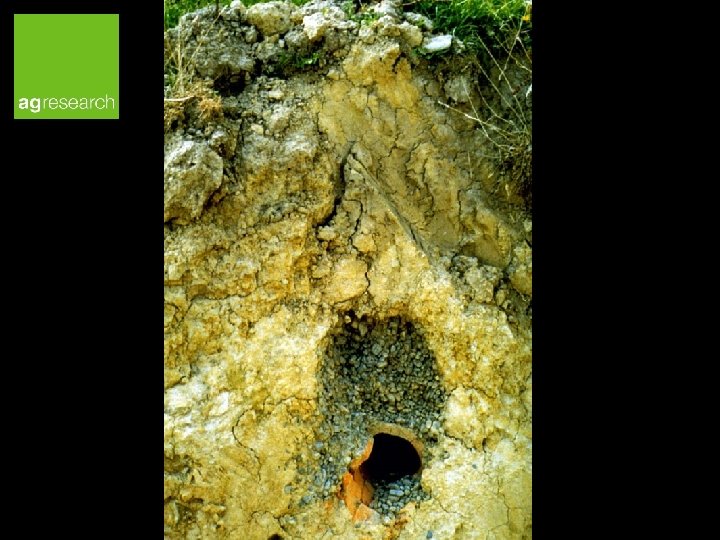 Field drainage Fissure network Trench spoil 25 cm Pea gravel 45 cm Mole channel Intercepting tile line