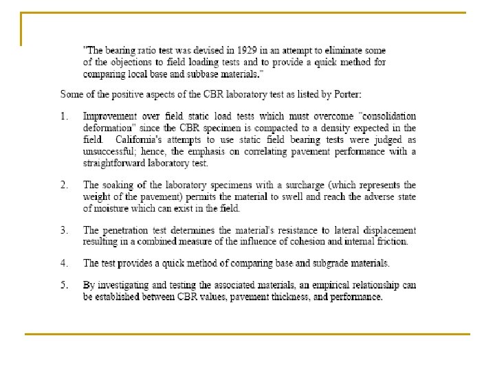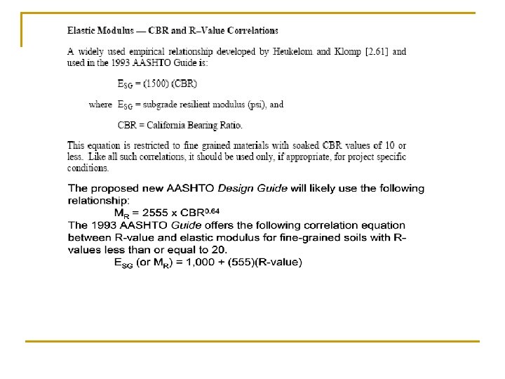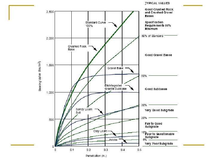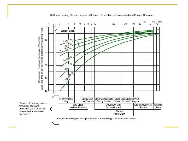 CBR 0. 1” = Load required for 0. 1” penetration of plunger into soil (lb. ) 3000 CBR 0. 2” = Load required for 0. 2” penetration of plunger into soil (lb. ) 4500 • Higher of the two values will be used for design • Usually CBR 0. 1” > CBR 0. 2”