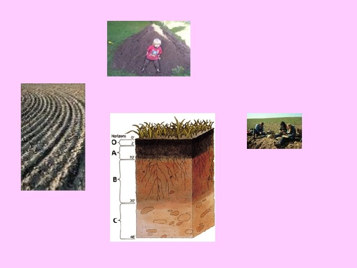 What is soil? • Soil is a mixture of living and nonliving materials • Formation of soil depends on the “parent material” – rocks that have broken down, climate, and land topography – the shape of the land • Organic matter in soil is living things that have broken down Ex. leaves, microscopic organisms