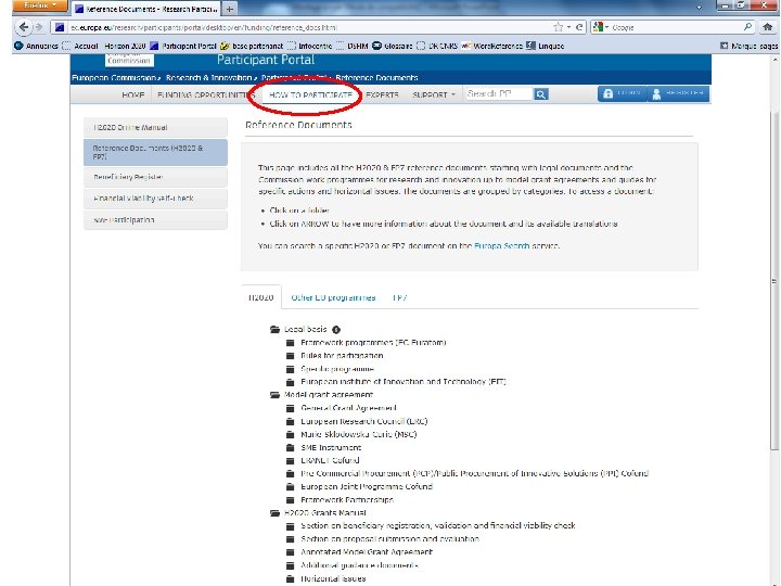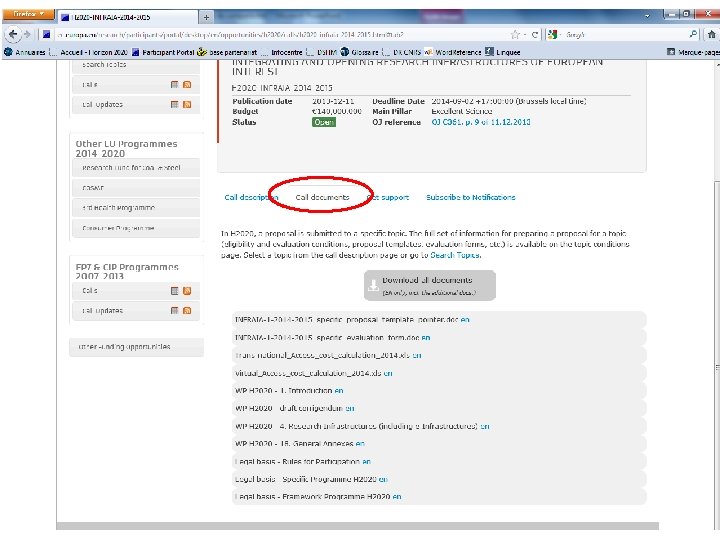 Les documents utiles _______________________ ü ü ü v Documents indispensables Texte du Programme de Travail (Work Program) Ligne de l’appel Template du dossier de candidature Autres documents éventuellement nécessaires à la soumission de la proposition Ex: Access Costs Table v Autre documentation utile Evaluation form pour comprendre les critères d’évaluation Règles de participation Annotated Grant Agreement