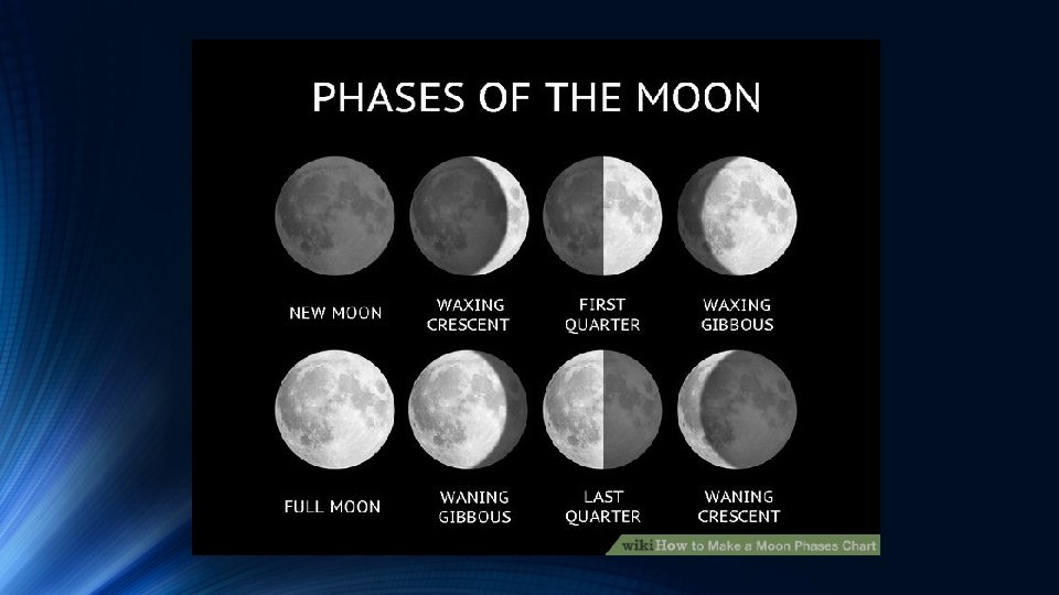 Phases of the Moon • The Moon is a celestial body/natural satellite that orbits Earth • The Moon does not produce its own light but reflects the Sun’s light • The Moon orbits Earth about every 29. 5 days • As it circles the Earth, the changing position of the Moon with respect to the Sun causes the moon to appear in different “phases”