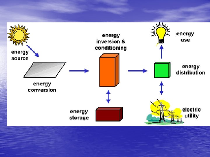 Pros and Cons cont. • PV can be designed for a variety of applications • No noise or air pollution • Require minimal maintenance and have long service life times. • Power can be either centralized in individual homes or distributed by electrical companies.