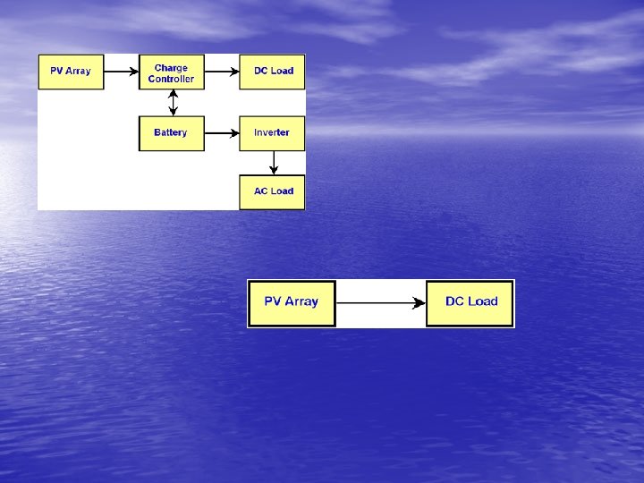 Stand-Alone PV Systems • Stand-alone PV systems are designed to operate independent of the electric • • • utility grid Supply DC and/or AC electrical loads The simplest type of stand-alone PV system is a direct-coupled system, where the DC output of a PV module or array is directly connected to a DC load Since there are no batteries involved in direct load systems, stand-alone PV systems are suitable for such processes as heating and pumping water, ventilation fans, etc…Although they can only work in the day. • Stand-Alone systems may also power AC loads such as batteries. Like the AC adapter which powers your laptop.
