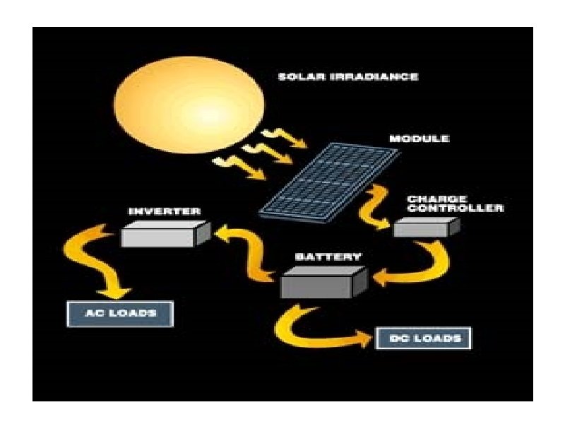 Continue • PV cells come in different shapes and sizes. It can be the size of a stape, or several inches. • Depending on the level of need, the PV cells can be put together to form a field or a single module for residential usage. • The photoelectric effect causes some materials to absorb light photons and convert them into electrons. • In general, photovoltaic modules and arrays produce DC electricity. • The most commonly used photovoltaic device is in a single junction or interface. • A multijunction device is a stack of single junction cells together serving as the collector. • Research are being done on Gallium Arsenide, Amorphous Silicon, and Copper Indium Diselenide.