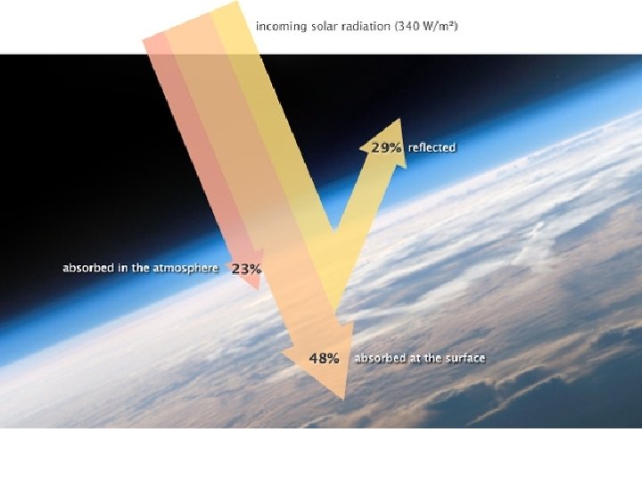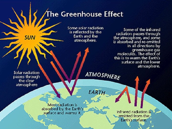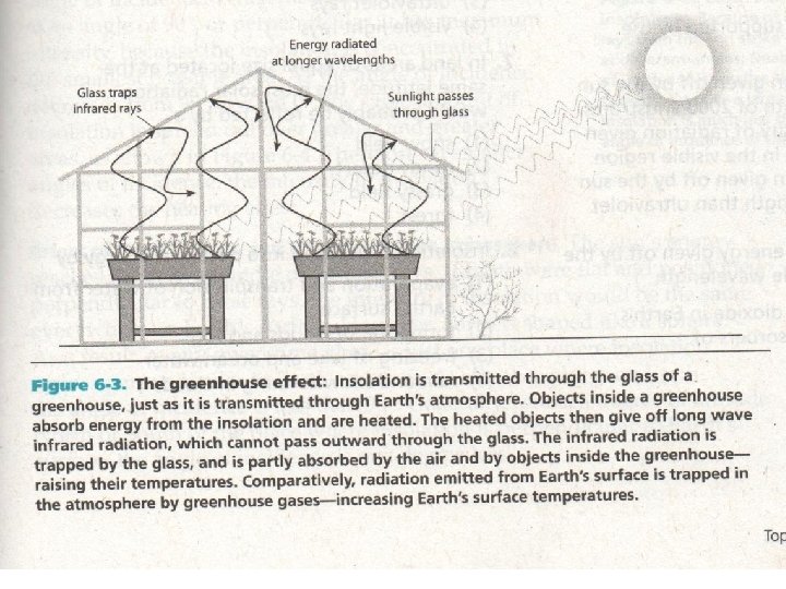 The Greenhouse Effect • Most of the energy re-radiated by Earth’s surface does not escape to outer space. • Long-wave radiation can be absorbed by greenhouse gases • Without greenhouse gases, Earth’s surface would be about 59 o. F colder than it would otherwise be.