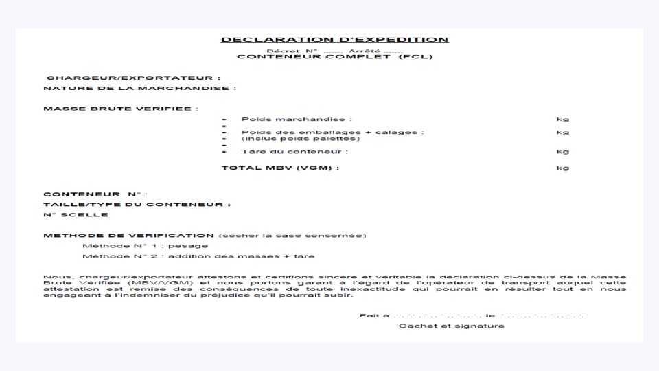 Formulaire VGM de l’AMQ Shipper au BL A titre d’illustration image non contractuelle 31