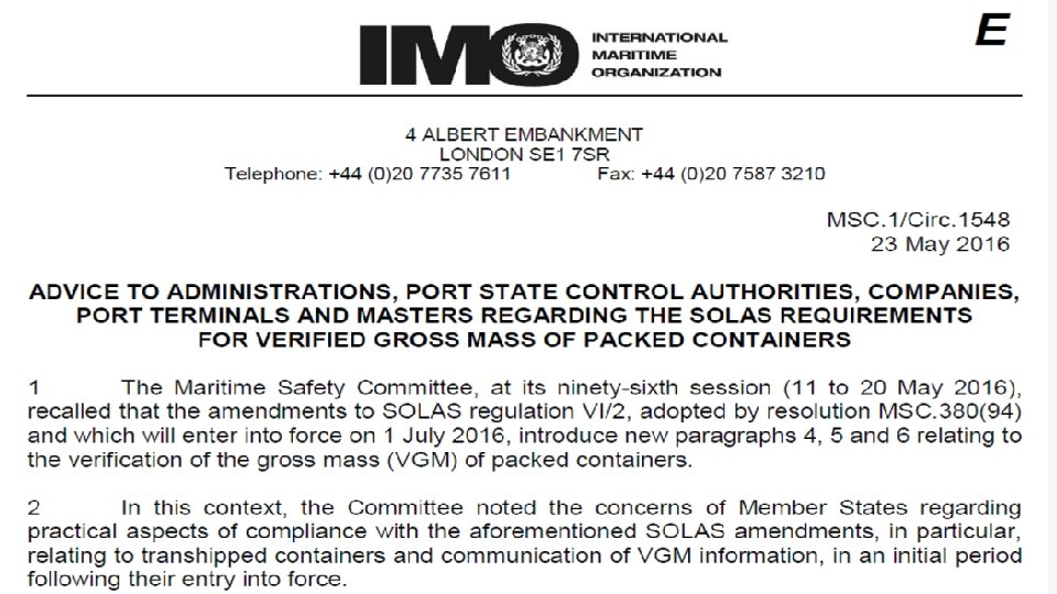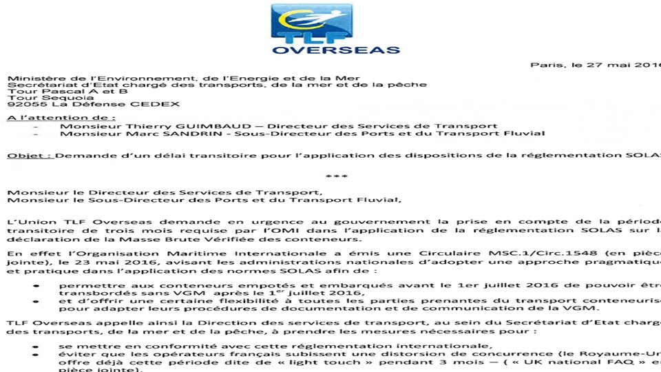 SOLAS • DERNIERE MINUTE : Vendredi 27 Mai Communication OMI