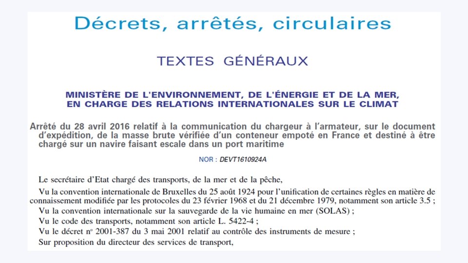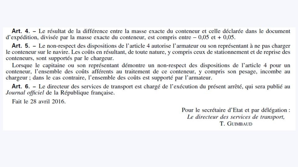 1 er JUIN 2016 Masse Brute Vérifiée (VGM) et Annonce AP+ 01/06/2016