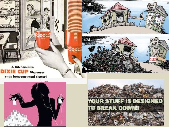 Throw-a-way society • Only Humans produce waste other organisms can’t use • Until a society becomes relatively wealthy – Very little waste – 1900’s most material reused/recycled • junk/scrap dealers • After WWII – Cultural/Social changes – Disposable products became the norm – Planned Obsolescence • Products designed to be replaced • Increases consumption & waste