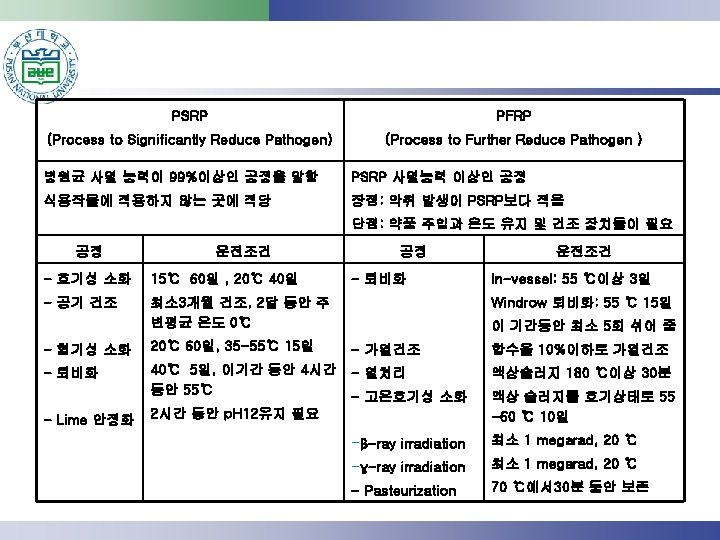 Main topic Item covered Pathogen removal - Sludge disinfection mechanisms Composting Autothermal aerobic digestion Alkaline stabilization Pasteurization Thermal drying Assessment of alternatives For sludge management at Wastewater treatment plants - Trends on sludge management in some countries Conditions to be analyzed before assessing alternatives Methodological approach for the selection of alternatives Organization of an assessment matrix Sludge management at the wastewater treatment plant Land disposal of sludge - Beneficial uses of biosolids Requirements and associated risks Use and handling Storage, transportation, application and incorporation