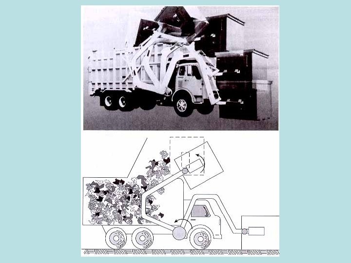 Types of Collection Vehicles • Packer trucks (to increase density of MSW and mass of collection, compacted density ~900 lb/yd 3) – – – Rear loading Side loading Front loading Manual loading Mechanical loading Chassis specified by volume (e. g. , 20 yd 3) • Roll-off trucks (container left at site) • Truck for collection of recyclables