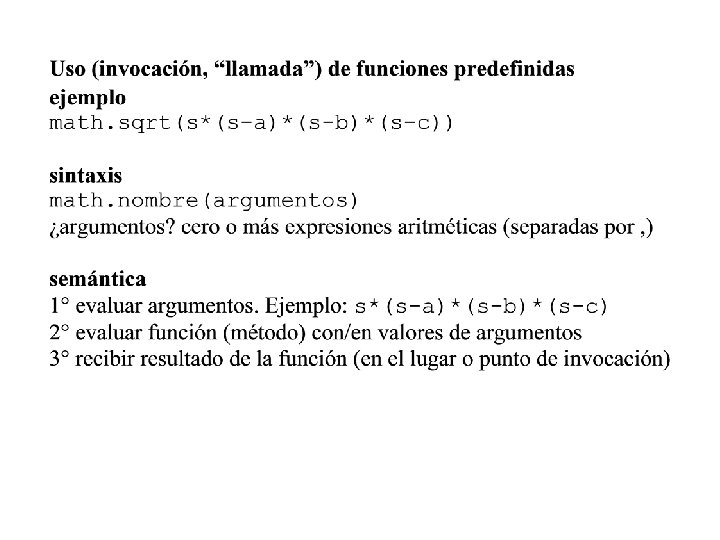 #programa: calcula area y perimetro de anillo #obtener lado del cuadrado a=input(“lado cuadrado? ”) #calcular valores de los radios r=a/2. 0 #radio del círculo menor R=math. sqrt(2)*a/2 #radio del círculo mayor #calcular y mostrar resultados print “área=“, area(R)-area(r) print “perímetro=”, perimetro(R)+perimetro(r) Notas • Variable r del programa es distinta del parámetro r de las funciones (que “mueren” al terminar la función) • Variable r (con minúscula) es distinta de R (con mayúscula)